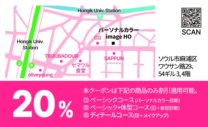 Image Hoでは、パーソナルカラー診断後、ファッション、アクセサリー、メイクアップ製品の推奨やショッピングサービスなど、パーソナルカラーコンサルティングサービスを提供しています。