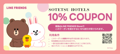 弘大明洞新沙聖水仁寺洞など、韓国の5か所にあるラインフレンズストアでショッピングを楽しみ、クーポンを提示すると10%割引の特典を受けられます。