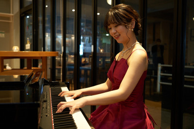 ピアニスト・町田莉佳さん、植木藍子さん、角田貴子さんによる生演奏を聴きながら、美味しいお食事とお酒をお楽しみいただけます。